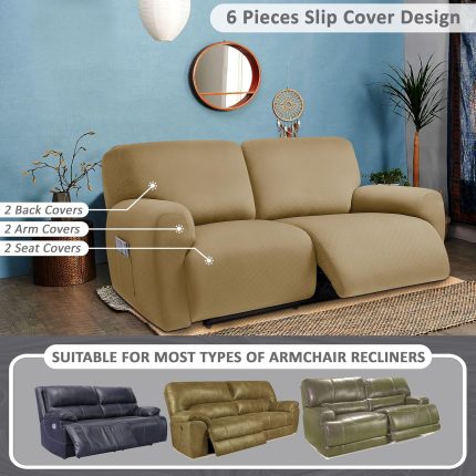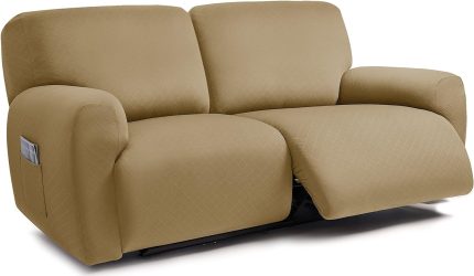 Squared Jacquard Design Extra Wide 75″ – 100″, Reclining 2 Seater Sofa, Extra Wide 6-Piece Reclining LoveSeat Slipcover, Reclining Sofa Covers, Thick, Soft, Washable (Sand)