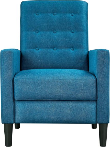 Fabric Recliner Chair Mid-Century Modern Recliner Adjustable Single Recliner Sofa with Thicker Seat Cushion Tufted Upholstered Sofa with Pocket Spring for Living Room Bedroom Blue