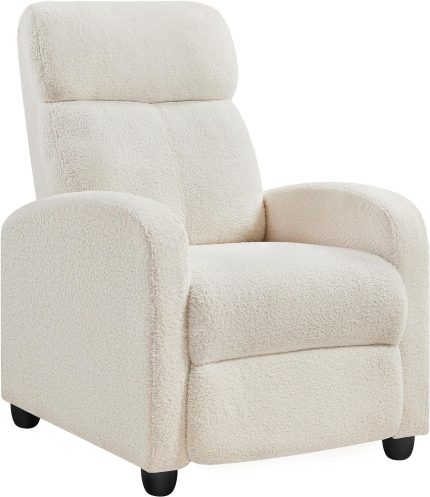 Fabric Recliner Chair Single Sofa Home Theater Seatting Adjustable Modern Single Reclining Chair for Living Room Bedroom Home Theater Ivory