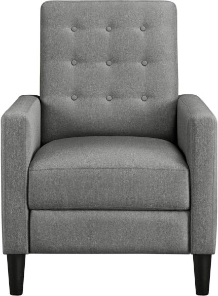 Fabric Recliner Chair Mid-Century Modern Recliner Adjustable Single Recliner Sofa with Thicker Seat Cushion Tufted Upholstered Sofa with Pocket Spring for Living Room Bedroom Gray