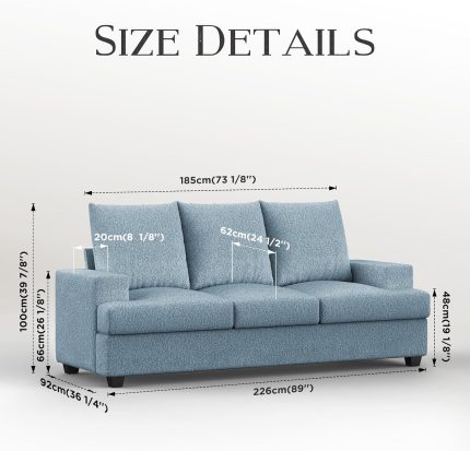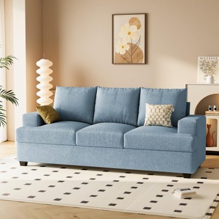 89″ Sofa Couch with Extra Deep 3 Seats Memory Foam Modern Sofa Couches for Living Room Washable Removable Chenille Cover Cozy Lounge Sofa, Light Blue