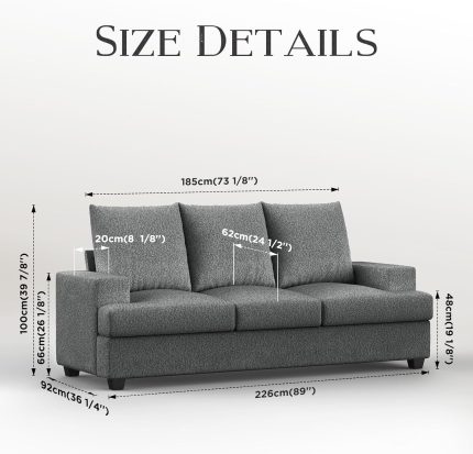 89″ Sofa Couch with Extra Deep 3 Seats Memory Foam Modern Sofa Couches for Living Room Washable Removable Chenille Cover Cozy Lounge Sofa, Dark Gray