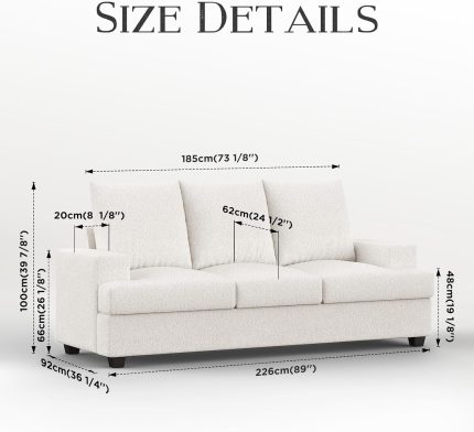 89 Inch Sofa, Comfy Sofa Couch with Extra Deep Seats, Modern Sofa- 3 Seater Sofa, Couch for Living Room Apartment Lounge, Beige Chenille