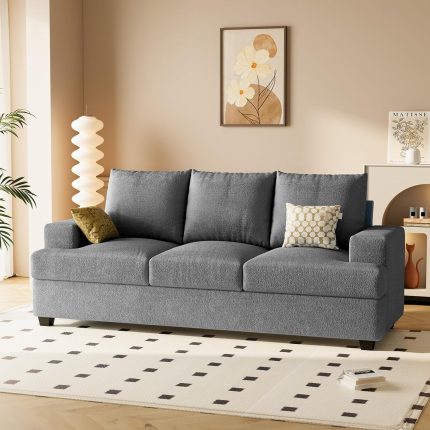 89 inch Sofa, Comfy Sofa Couch with Extra Deep Seats, Modern Sofa- 3 Seater Sofa Couch for Living Room Apartment Lounge, Grey Bouclé
