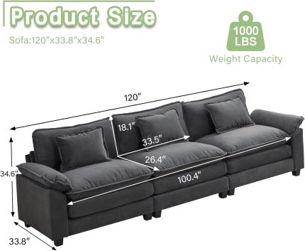 Sectional Sofa Comfy Cloud Couch for Living Room with Pillows, Modern Chenille Sofa Sleeper Deep Couches with Ottoman (Grey, 3-Seat-Style2)