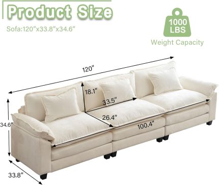 Sectional Sofa Comfy Cloud Couch for Living Room with Pillows, Modern Chenille Sofa Sleeper Deep Couches with Ottoman (Cream White, 3-Seat-Style2)