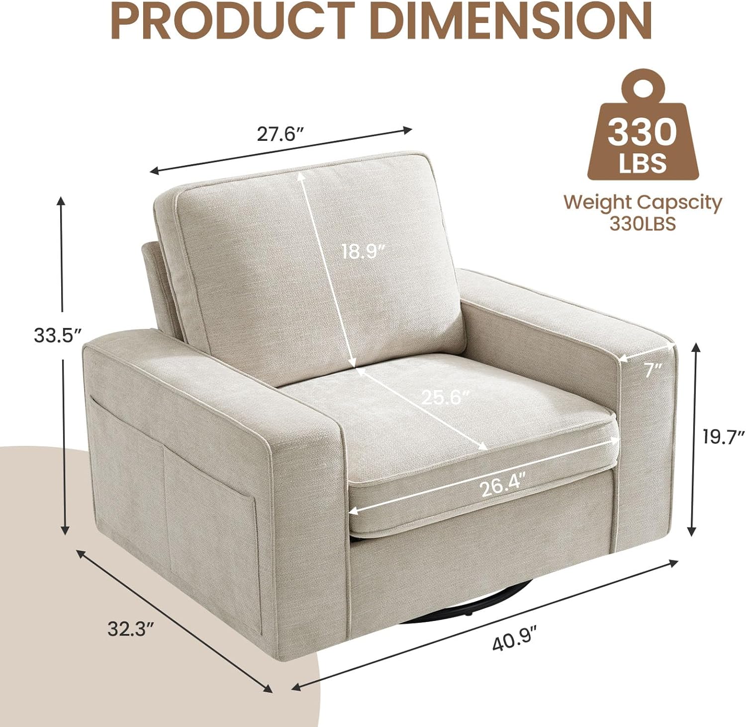 Home Sofa Chair 360-Degree Swivel Accent Chair, Modern Oversized Club Arm Chair with Side Pockets, Classic Style Single Sofa Chair for Living Room, Bedroom (Beige)