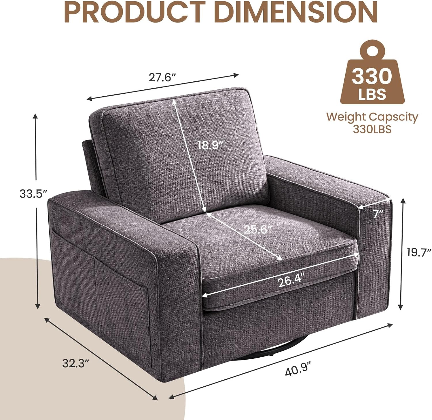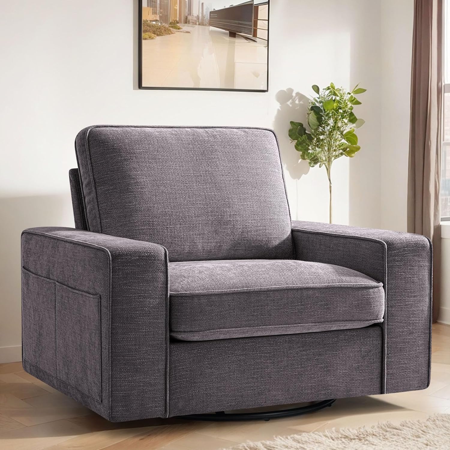 Home Sofa Chair 360-Degree Swivel Accent Chair, Modern Oversized Club Arm Chair with Side Pockets, Classic Style Single Sofa Chair for Living Room, Bedroom(Deep Grey)