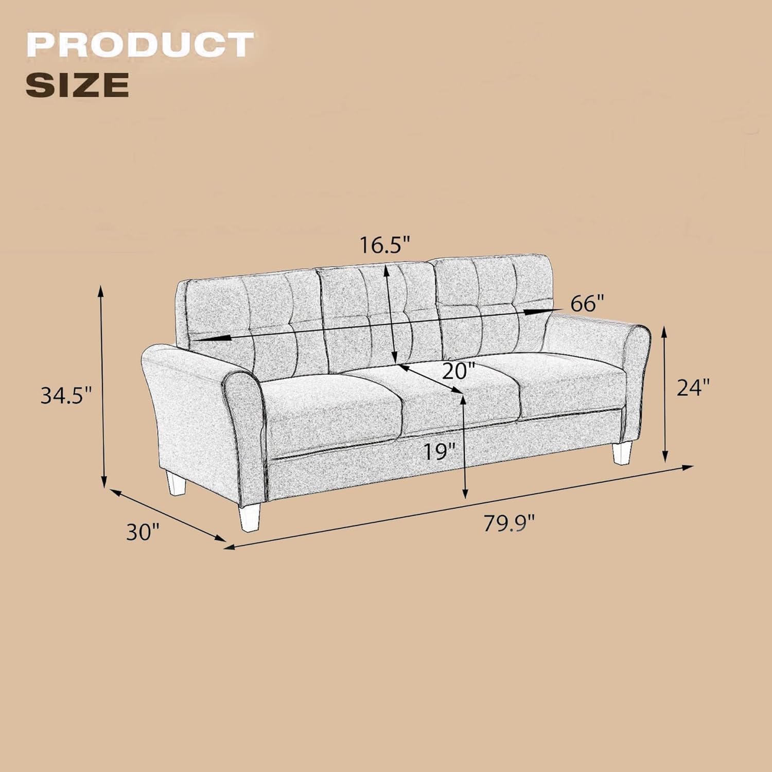 • 【Upholstered Sofa Couch】Our living room sofa is upholstered in fine linen material, seat cushions filled with high resilience foam provide comfortable support for your body when seated, and easily regain their shape when you rise.