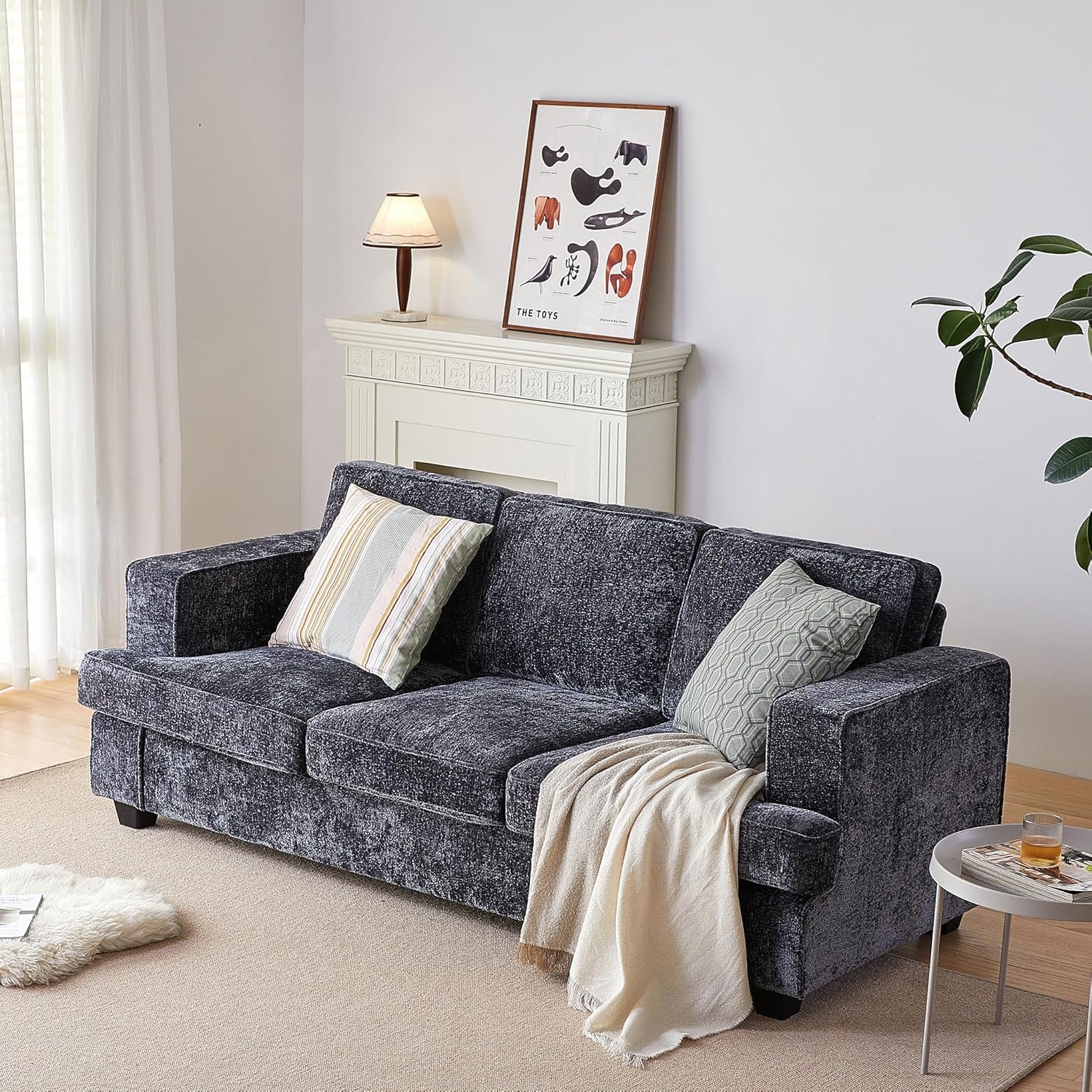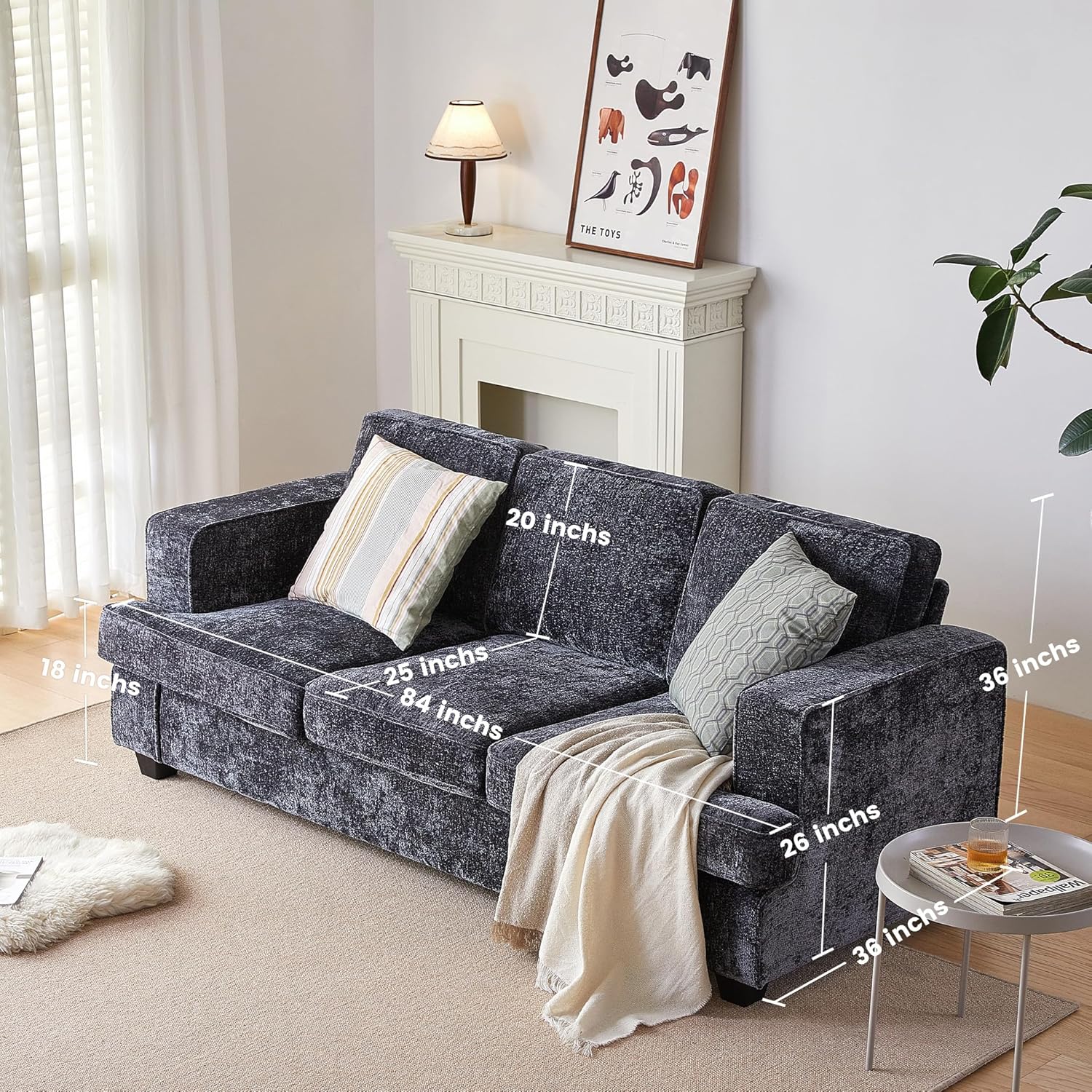 Home Sofa Three-seat Sofa 84″ Sofa, Sofa Bed Couch, Sleeper Sofa with Extra Deep Seats, Sectional Couches for Living Room, Chenille Deep Gray