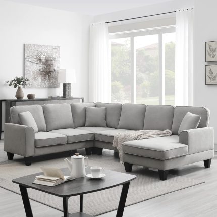 - Upgraded Durable & Comfort: The frame of sectional couch is made from sturdy wood for improved durability supporting 1100 lbs of weight, perfect to last for years. High density foam and spring filled sear bring you comfortable feeling.