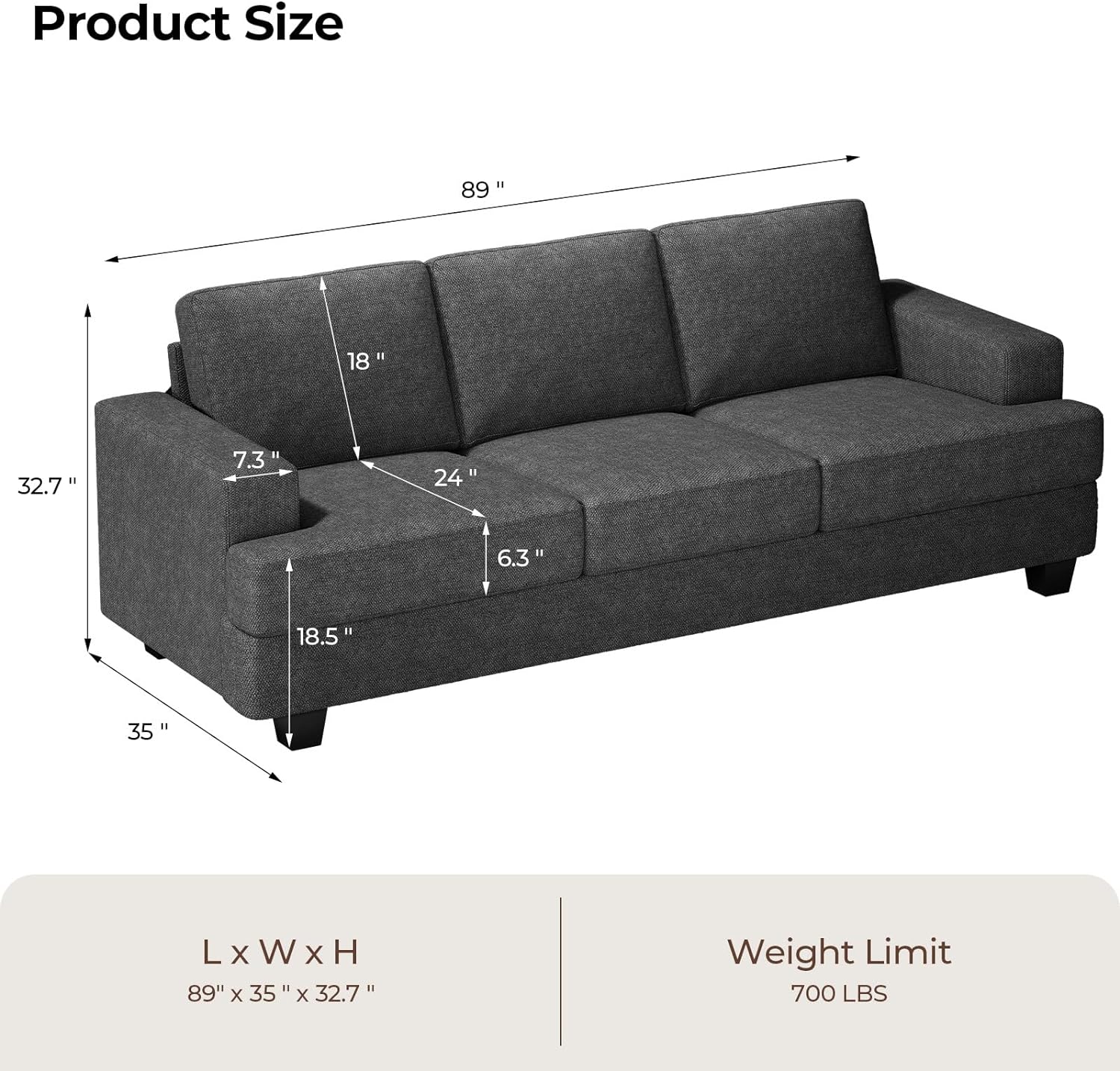 • 3-SEATER COUCH – 89” spacious sofa has room to comfortably seat 2-3 people, making it an excellent choice for socializing with friends and family or enjoying quality time with your beloved companions.