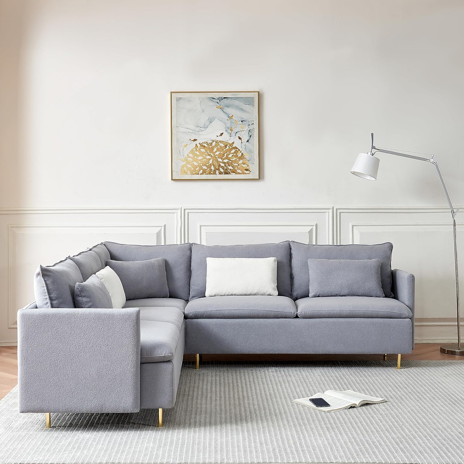 • Comfortable Design: The L shaped sofa couch adapts a modern design concept, come with 5 waist pillow, adopts the ergonomic design to fit the curve of the body, it is provide a wide back support, armrests of appropriate height, soft backrest and high elasticity seats, offer more comfort and softness feeling, you can release the fatigue of the day on the modern sofa.