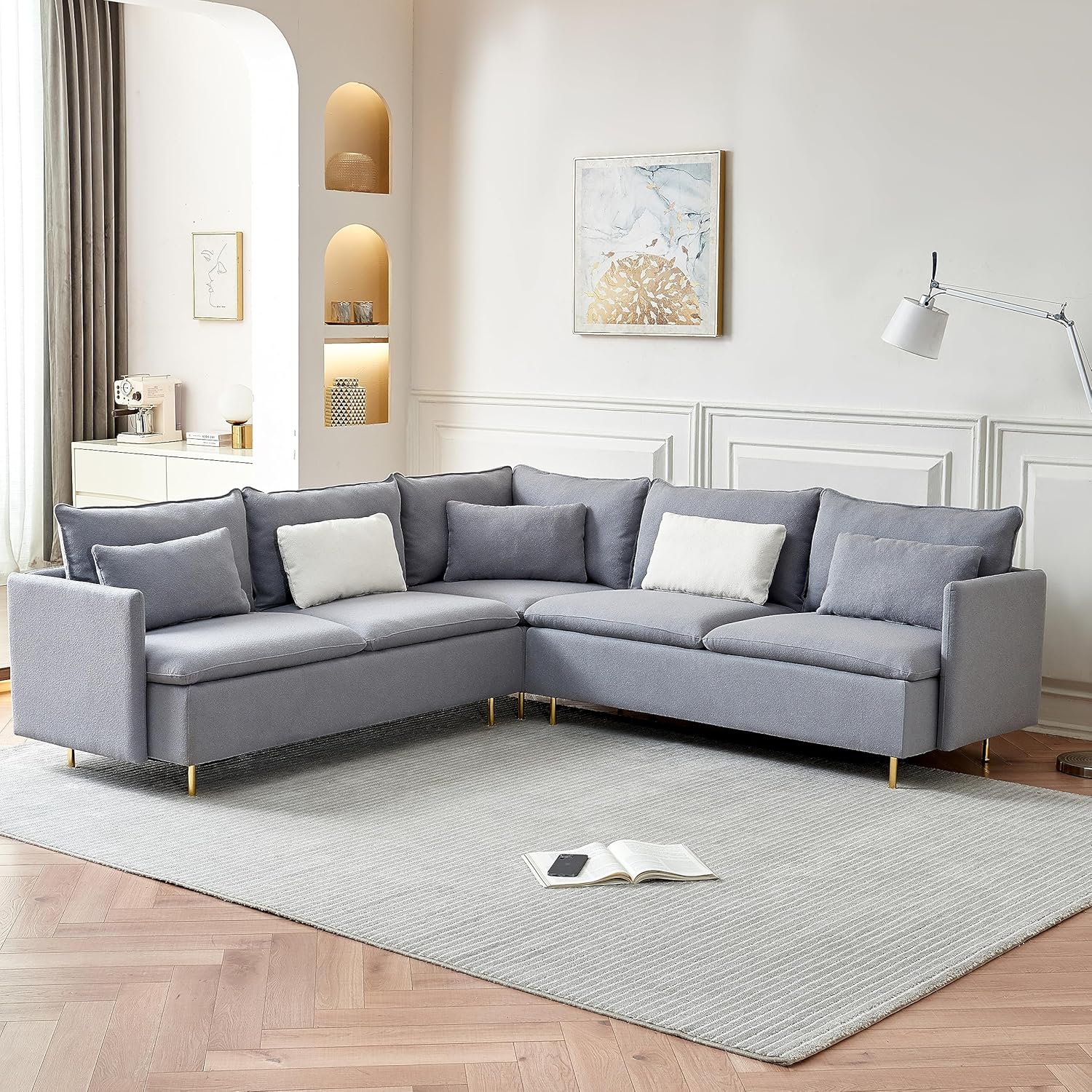 • Sturdy Construction: The l shape couch frame is made of solid wood, the backrest is filling with highly elastic foam, the seat is filling with high resilient sponge, with strong rebound, the living room couch come with sturdy golden metal legs which is provides the strong support for the couch so that L shaped couch can support less than 1000lbs.
