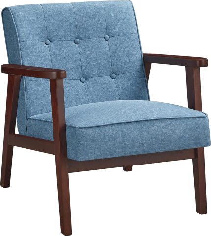 • Durable & Long-Term Using – The armrests and frame are made of solid wood, there is no peculiar smell. The accent chairs for living room is so sturdy that can hold up to 550 pounds. And metal legs with padding under the feet to protect your floors from scuffs and scratches. So it will last a long time in your living space.