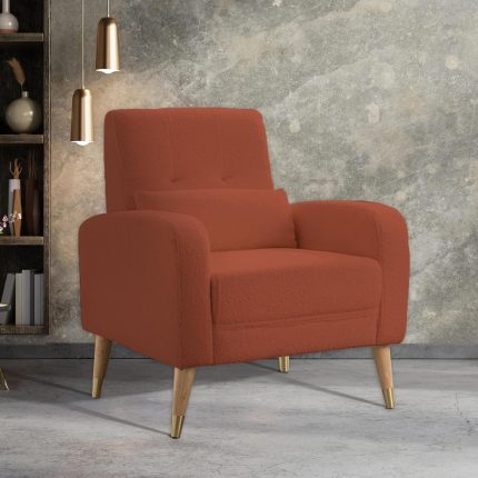 Accent Chair Mid-Century Modern Chair with Pillow Upholstered Lounge Arm Chair with Solid Wood Frame & Soft Cushion for Living Room, Bedroom, Burnt Orange