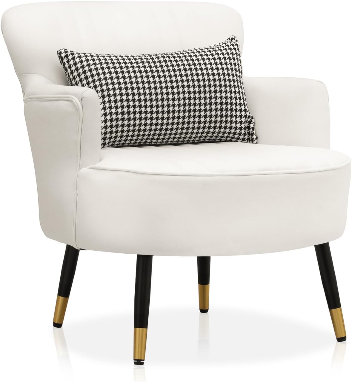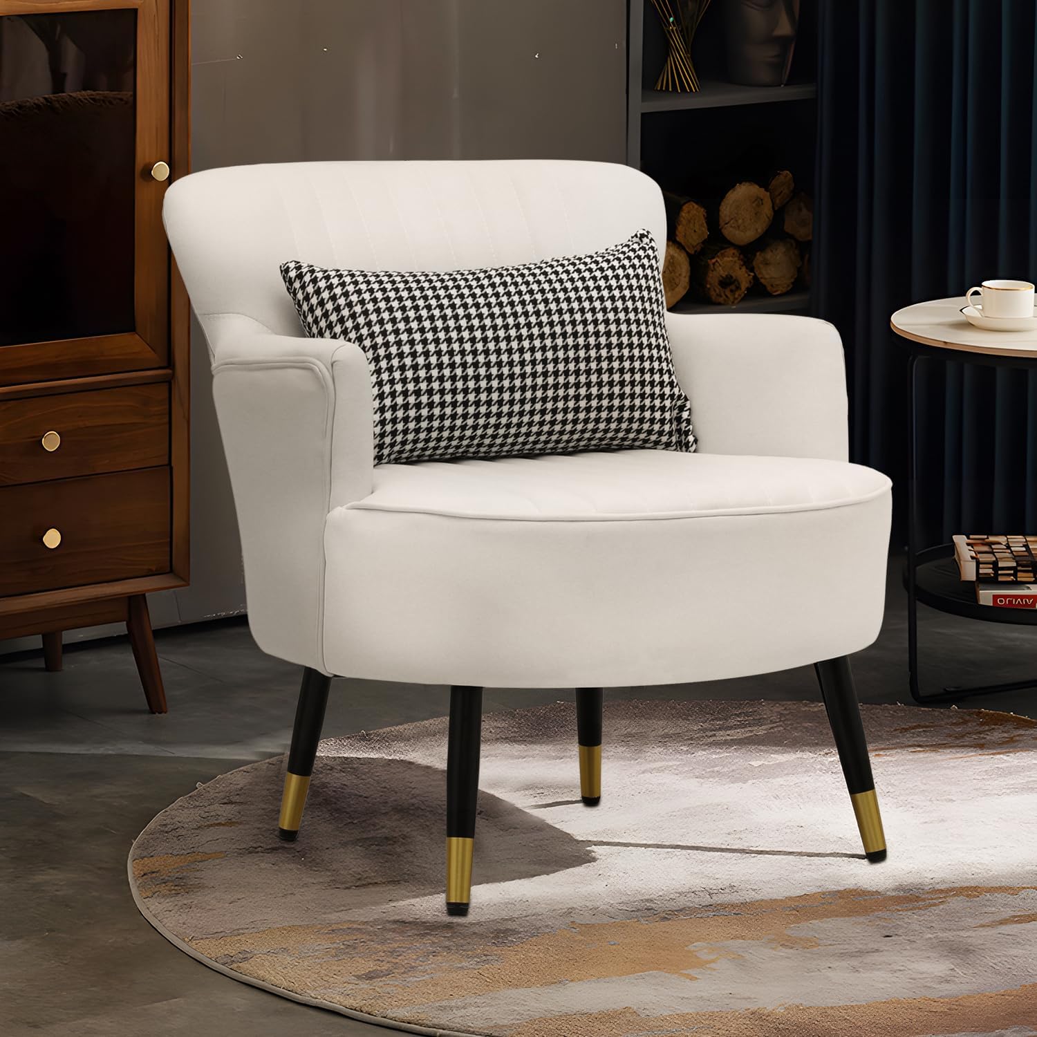 Home Sofa Chair Accent Chair Modern Armchair Single Sofa Chair with Lumbar Pillow, Mid Century Modern Comfortable Reading Chair for Living Room Bedroom, Metal Legs Back Club Arm Chair, White
