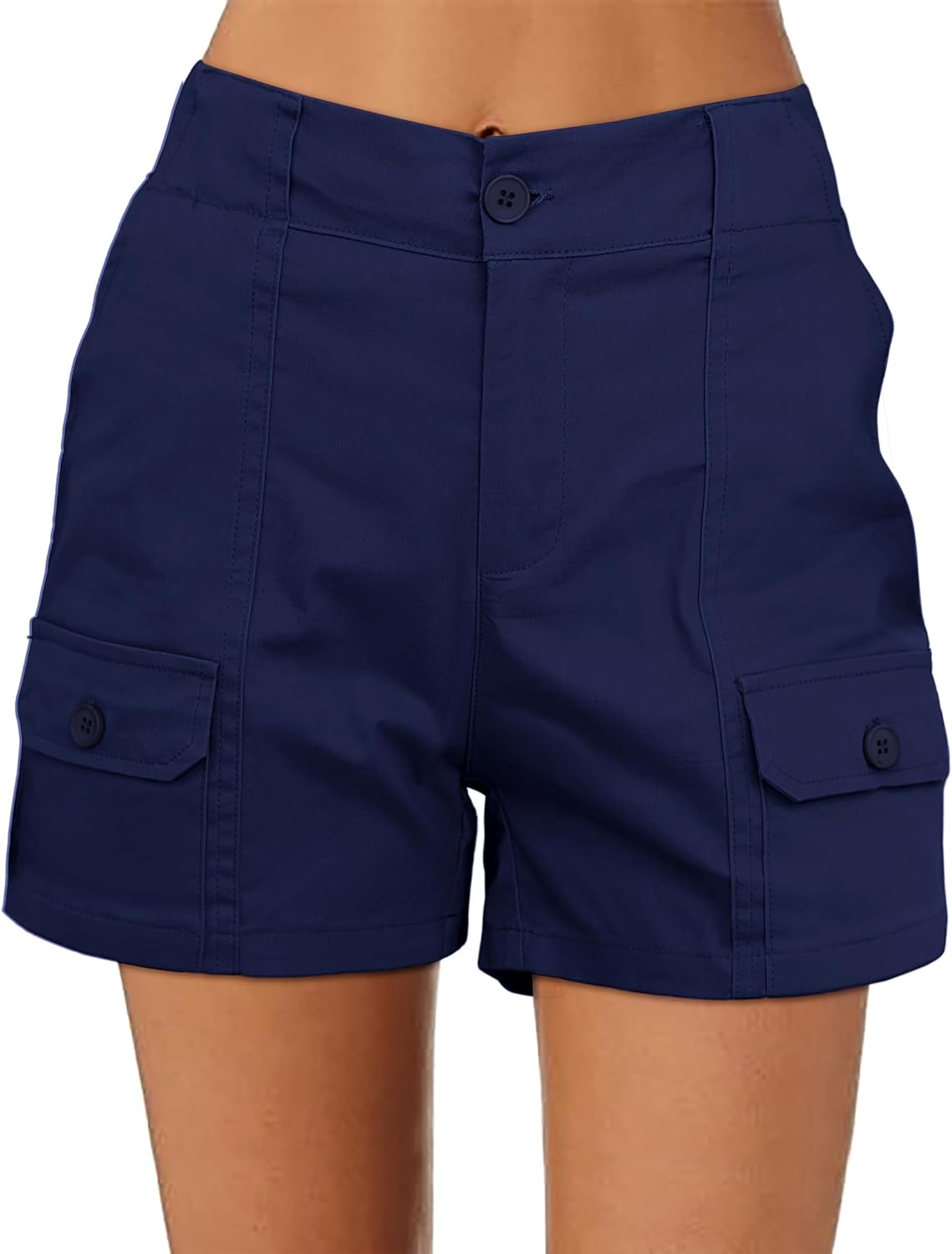 Cargo Shorts for Women Casual Summer High Waisted Chino Shorts Ribbed Elastic Waist Utility Pockets Comfy Shorts