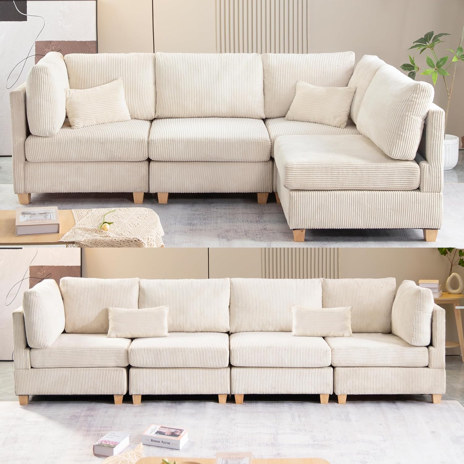 - Soft Corduroy Upholstered Modular Sectional Sofa⚡The surface of our sofa is made of selected corduroy, which has a soft texture and gives you a relaxing feeling. It’s easy to care for and won’t wrinkle or fade.