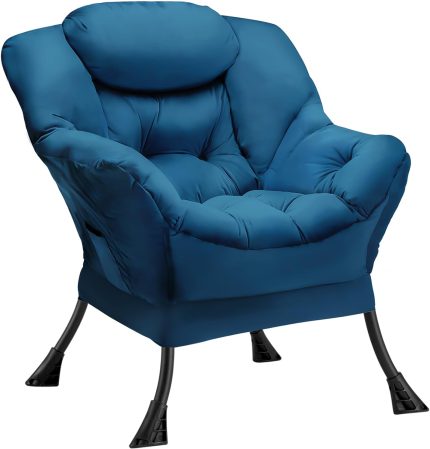 Fabric Lazy Chair Large Accent Chair,Velvet Modern Lounge Reading Chair with Armrests & Side Pocket,Upholstered Armchair for Living Room,Bedroom,Dorm,Blue