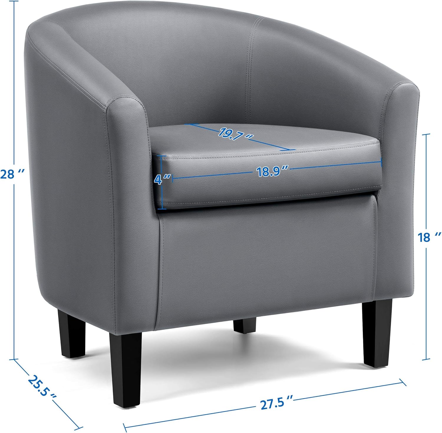 Home Sofa Single Sofa Faux Leather Club Chair, Modern Accent Chair and Cozy Barrel Chair with Sturdy Wood Legs for Living Room Bedroom Reception Room, Gray
