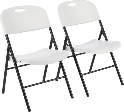 Folding Plastic Chair with 500-Pound Capacity, White, 2-Pack