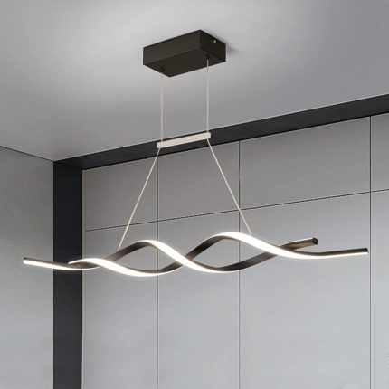 Modern Chandelier Light Fixtures, Dimmable LED Pendant Light with Remote Control, Acrylic Wave Chandeliers for Dining Rooms Bedroom Kitchen Restaurant, 3000K-6000K, 28W, Black