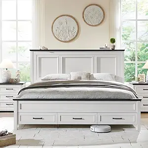 - Transitional Design: Perfect blend of classic & contemporary styles, this solid wood bed features transitional design that complements any bedroom decor. Combination of clean lines & subtle curves creates harmonious balance that adds elegant touch to your space.