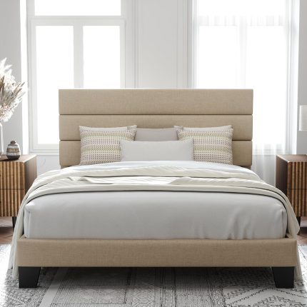 - 52.5″ Elegant Headboard with Tufted Detailing: The wood bed’s headboard is adorned with soft padded upholstery & tufted detailing, adding touch of luxury & sophistication to your sleeping space. Meticulously finished with graceful folds, creating exquisite visual appeal.