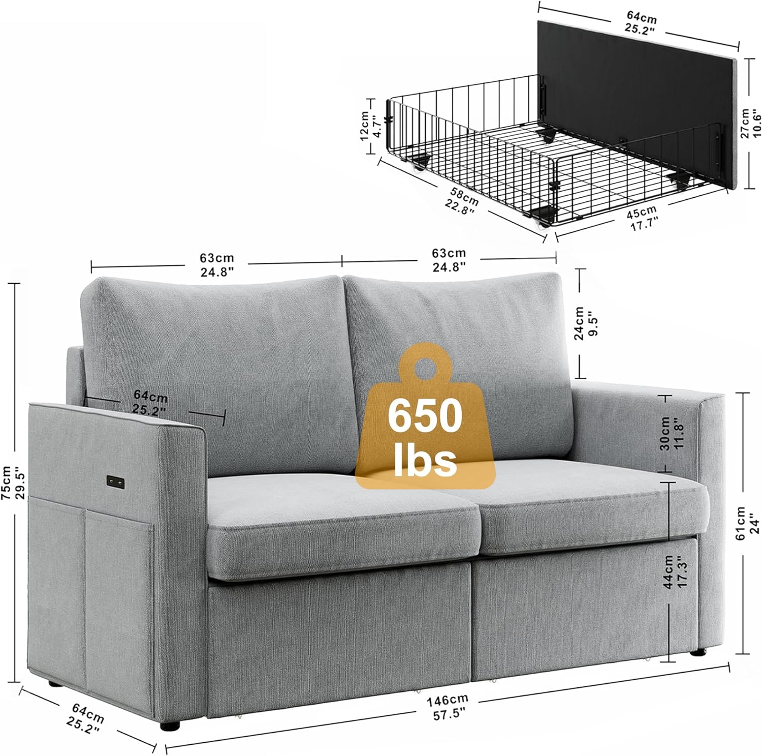 • Size and Easy to assemble: Loveseat Chair: 57.5”W x 25.2”D x 29.5”H. and it is easy to assemble for you with detailed instructions and tools.