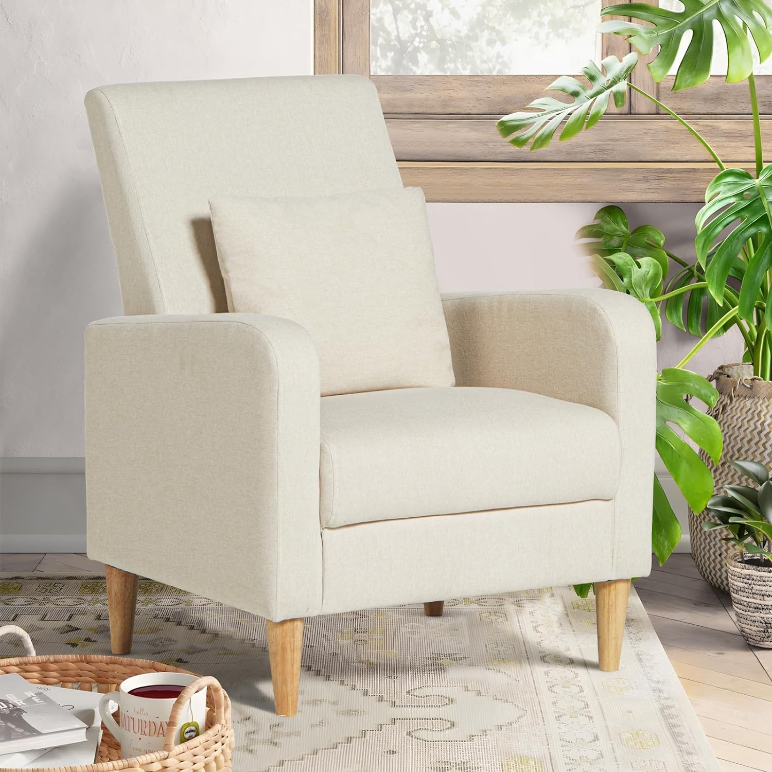 - ?ERGONOMIC ARM CHAIR WITH BACK PILLOW: Padded armrests support your arms and relax your shoulders, slightly curved backrest relaxes back muscles and relieves fatigue, and breathable linen-look fabric offers you extra comfort, and the extra back pillow can support your back better.