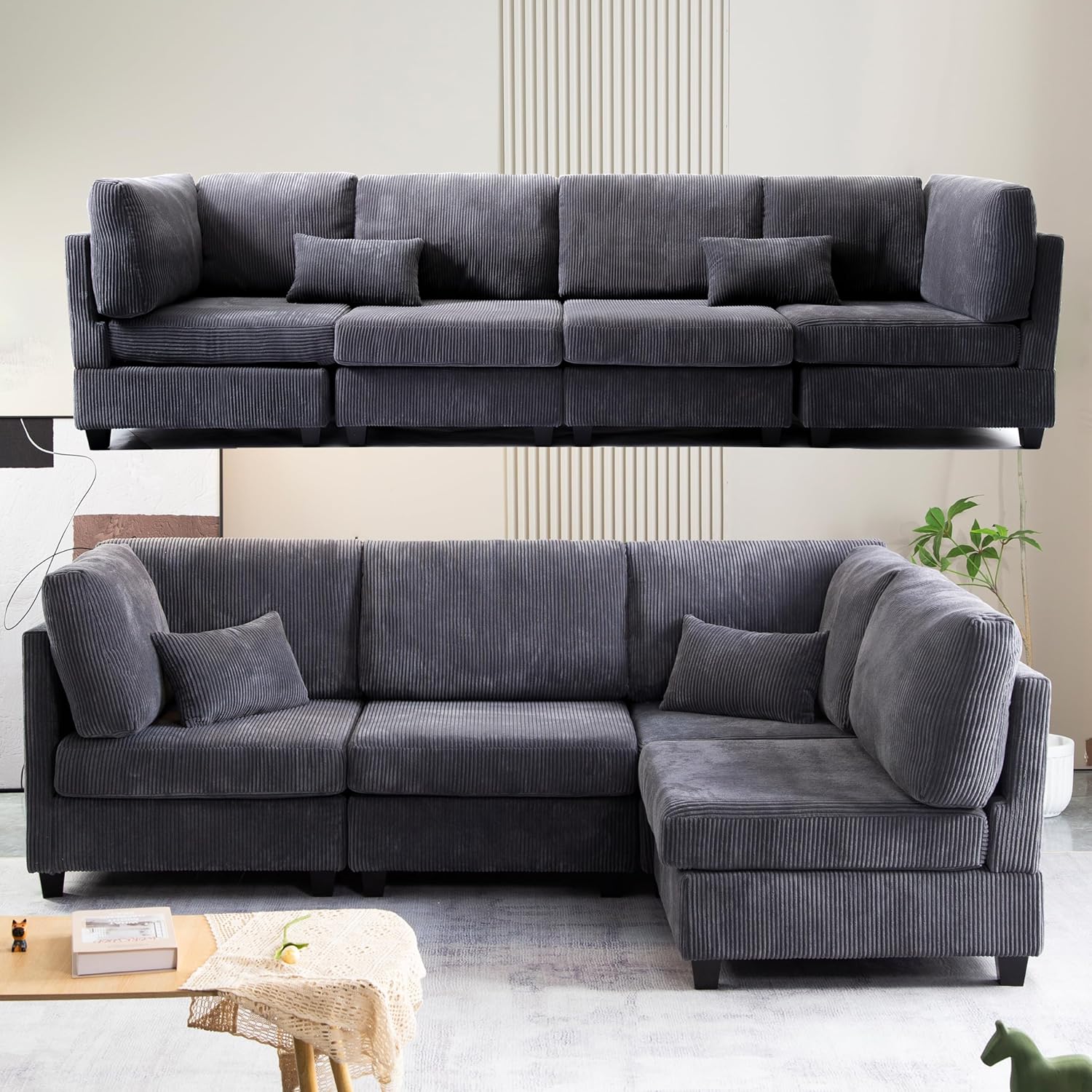 Home Sofa Corner Sofa Oversized Reversible Modular Sectional Sofa with Movable Ottoman, L Shaped Corner Couch with Detachable Seat & Back Cushion, Corduroy Upholstery Convertible Sleeper Sofa&Couch for Living Room