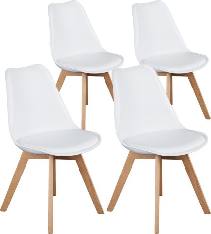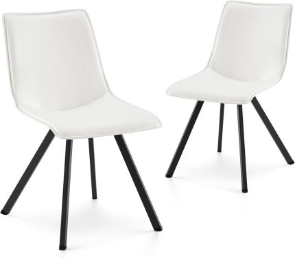 - ?【Eco-conscious Design with Premium Feel】Prioritizing both your comfort and the environment, these kitchen table chairs are wrapped in breathable, soft-touch leather, which is not only gentle to your skin but also environmentally friendly. The encompassing back and padded seat further elevate the plushness, making every seating moment a luxurious one.