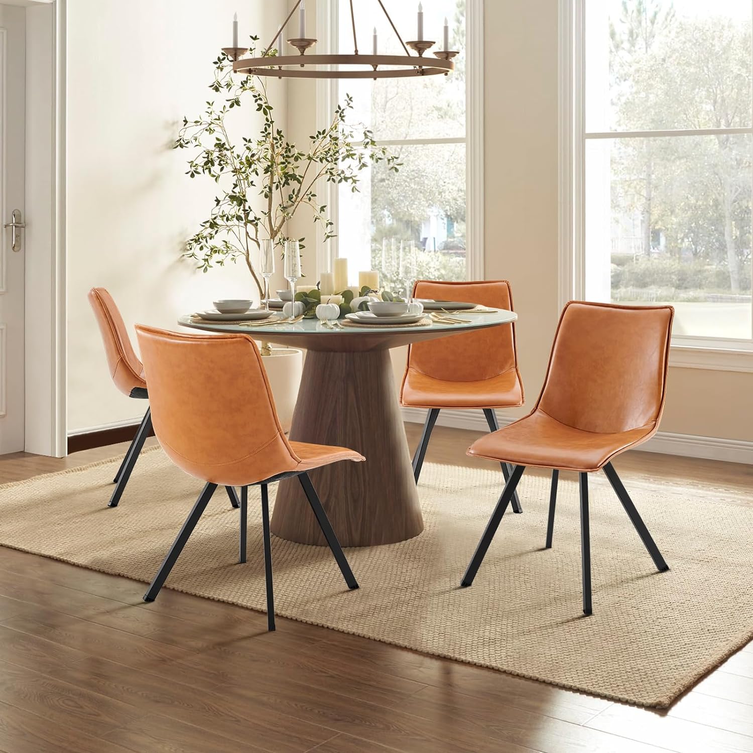 - ?【Eco-conscious Design with Premium Feel】Prioritizing both your comfort and the environment, these kitchen table chairs are wrapped in breathable, soft-touch leather, which is not only gentle to your skin but also environmentally friendly. The encompassing back and padded seat further elevate the plushness, making every seating moment a luxurious one.