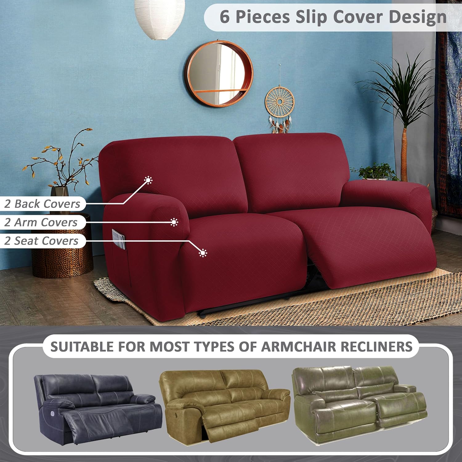 • HIGH QUALITY MATERIAL: This innovated 6 Piece love seat reclining 2 seater cover is crafted from luxurious Jacqurd fabric, and is very soft, comfortable and sturdy ‘S Love seat covers are as close to custom.