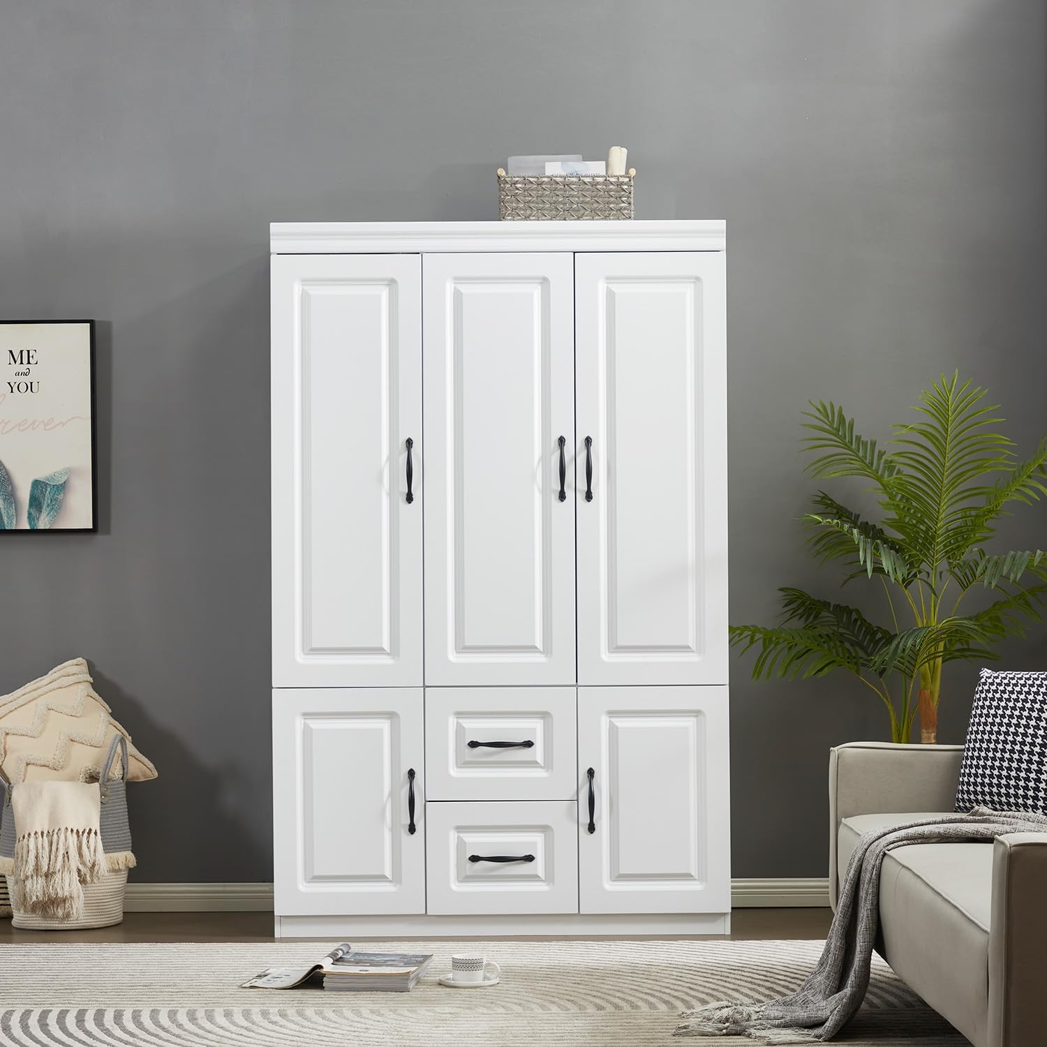 Wardrobe Closet Armoire Wardrobe Closet White Storage Cabinet Wooden Clothes Closets Cabinet Bedroom Armoires Cabinet with Hanging Rod Shelves