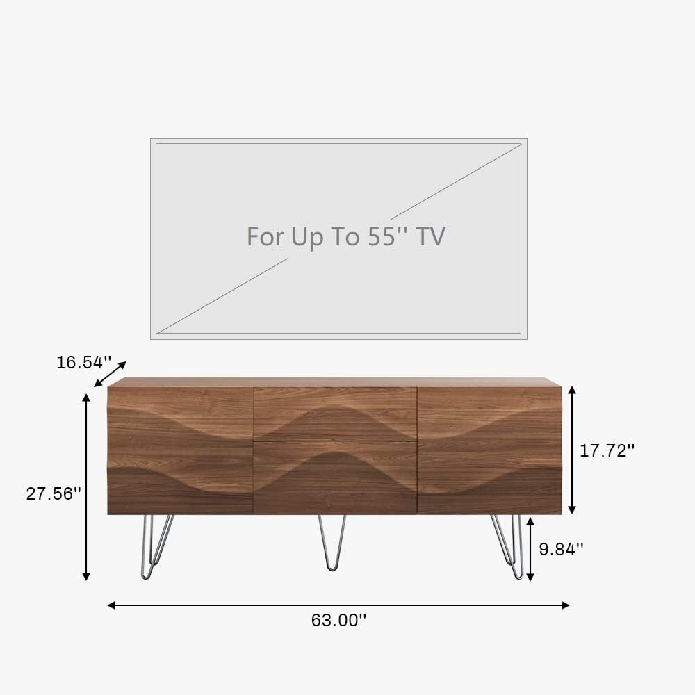 - 【Special Artwork to Decorate Your Living Space】This elegant TV console with a solid ash finish, features a wave-flow design on the doors surface, is an ideal mid-century unit for any living area.