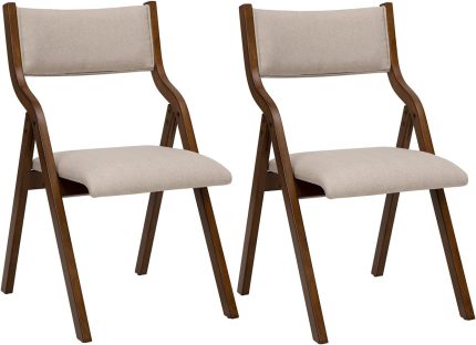 Modern Folding Chairs Folding Dining Room Chairs Set of 2, 18″ Seat Height, Taupe
