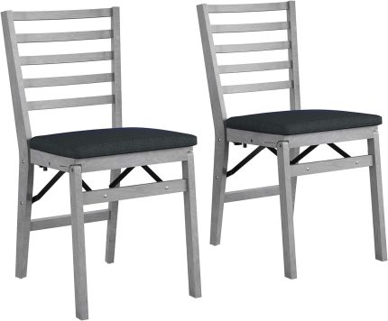 Contoured Back Wood Folding Chair, 2-Pack, Gray Wash